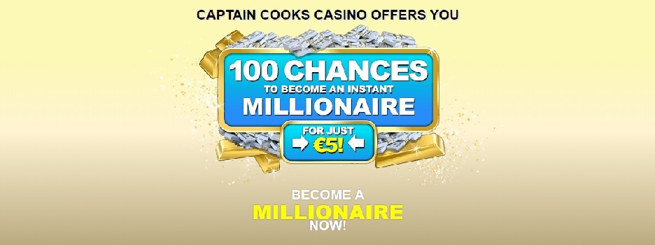 Ein jeder Neukunde, der sich im Captain Cooks Casino anmeldet, kann von einem ansprechenden Willkommensbonus profitieren. Ein jeder Spieler erhält einen Bonus von bis zu 500€ plus 100 Chancen, um zum Sofort-Millionär zu werden. Der Bonus verteilt sich auf die ersten fünf Einzahlungen wie folgt auf: